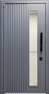 Входная термодверь с металлорейками, стеклом, электронным замком и полимерной покраской серого цвета представляет собой удачное сочетание инженерной точности и дизайнерской проработки. Благодаря применению современных материалов дверь отличается стабильностью геометрии и надёжностью конструкции.